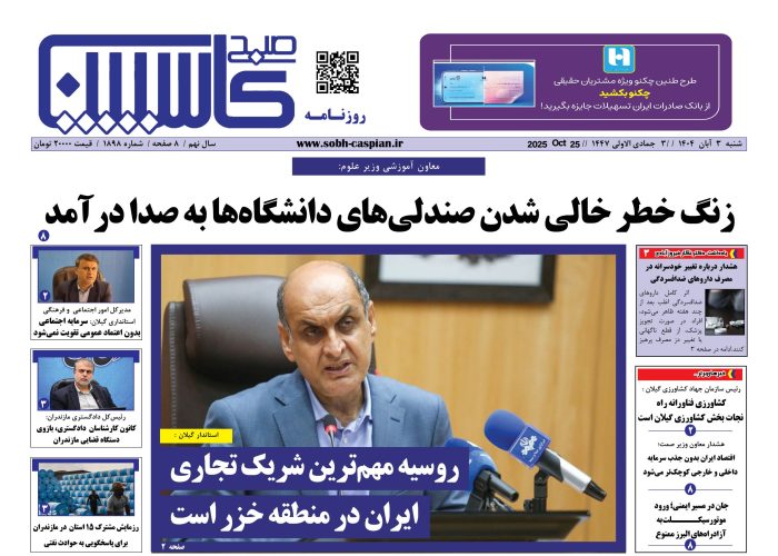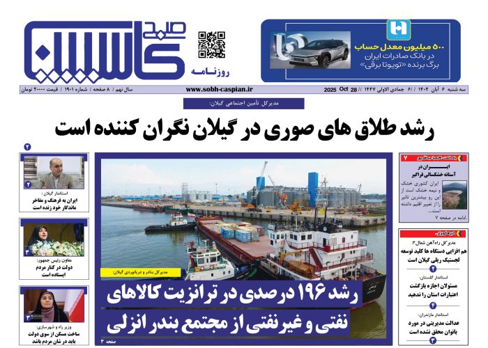 آرشیو روزنامه شماره روزنامه 1902– چهارشنبه 7 آبان 1404 شماره روزنامه 1901 – سه شنبه 6 آبان 1404 شماره روزنامه 1900 – دوشنبه 5 آبان 1404 شماره روزنامه 1899– یکشنبه 4 آبان 1404 شماره روزنامه 1898– شنبه 3 آبان 1404 شماره روزنامه 1897– پنج شنبه 1 آبان 1404 شماره روزنامه 1896– چهارشنبه 30 مهر 1404 شماره روزنامه 1894 – دوشنبه 28 مهر 1404 بارگذاری بیشتر