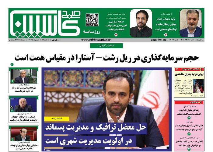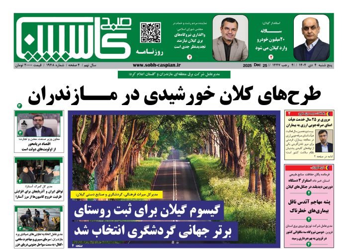 آرشیو روزنامه شماره روزنامه 1950– یکشنبه 7 دی 1404 شماره روزنامه 1949– شنبه 6 دی 1404 شماره روزنامه 1948– پنج شنبه 4 دی 1404 شماره روزنامه 1947– چهارشنبه 3 دی 1404 شماره روزنامه 1946– سه شنبه 2 دی 1404 شماره روزنامه 1945– دوشنبه 1 دی 1404 شماره روزنامه 1944– یکشنبه 30 آذر 1404 شماره روزنامه 1943– شنبه 29 آذر 1404 شماره روزنامه 1942– چهارشنبه 26 آذر 1404 بارگذاری بیشتر